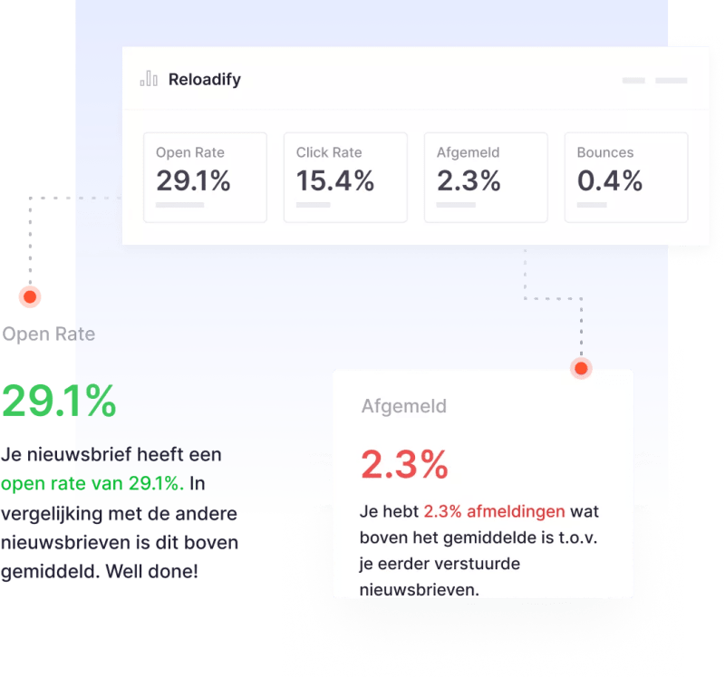 Leer meer over je klanten en ontdek eenvoudig welke marketing strategieën het beste werken. Analyseer de ROI van je nieuwsbrieven, triggers en flows.